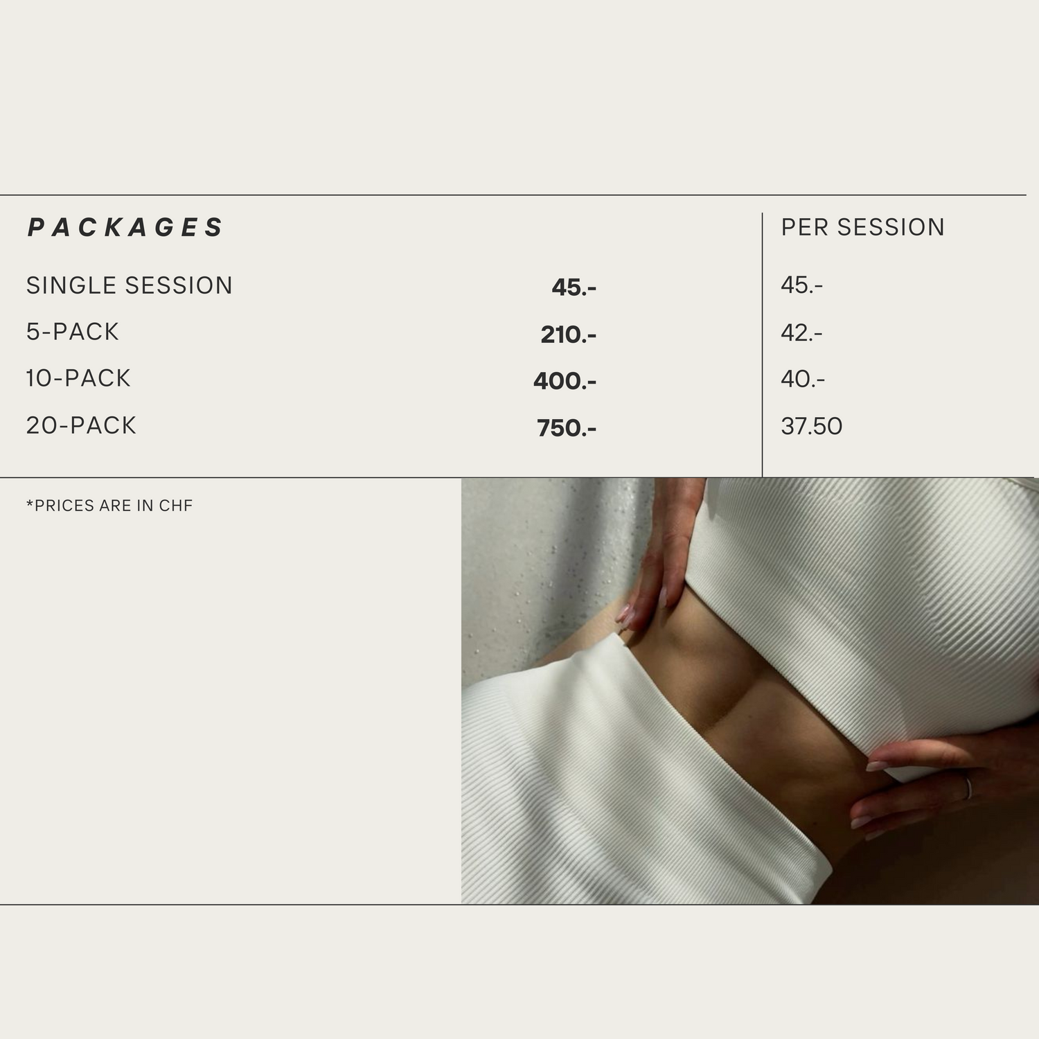 2 FOR 1 – Two sessions for the price of one (45.-) valid for two weeks