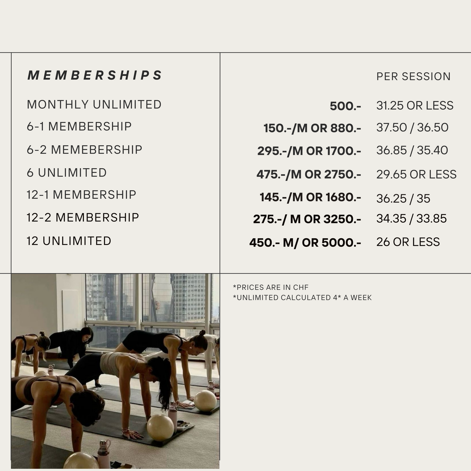 6-2 Membership – 295.-/month or 1700.- (instant payment)